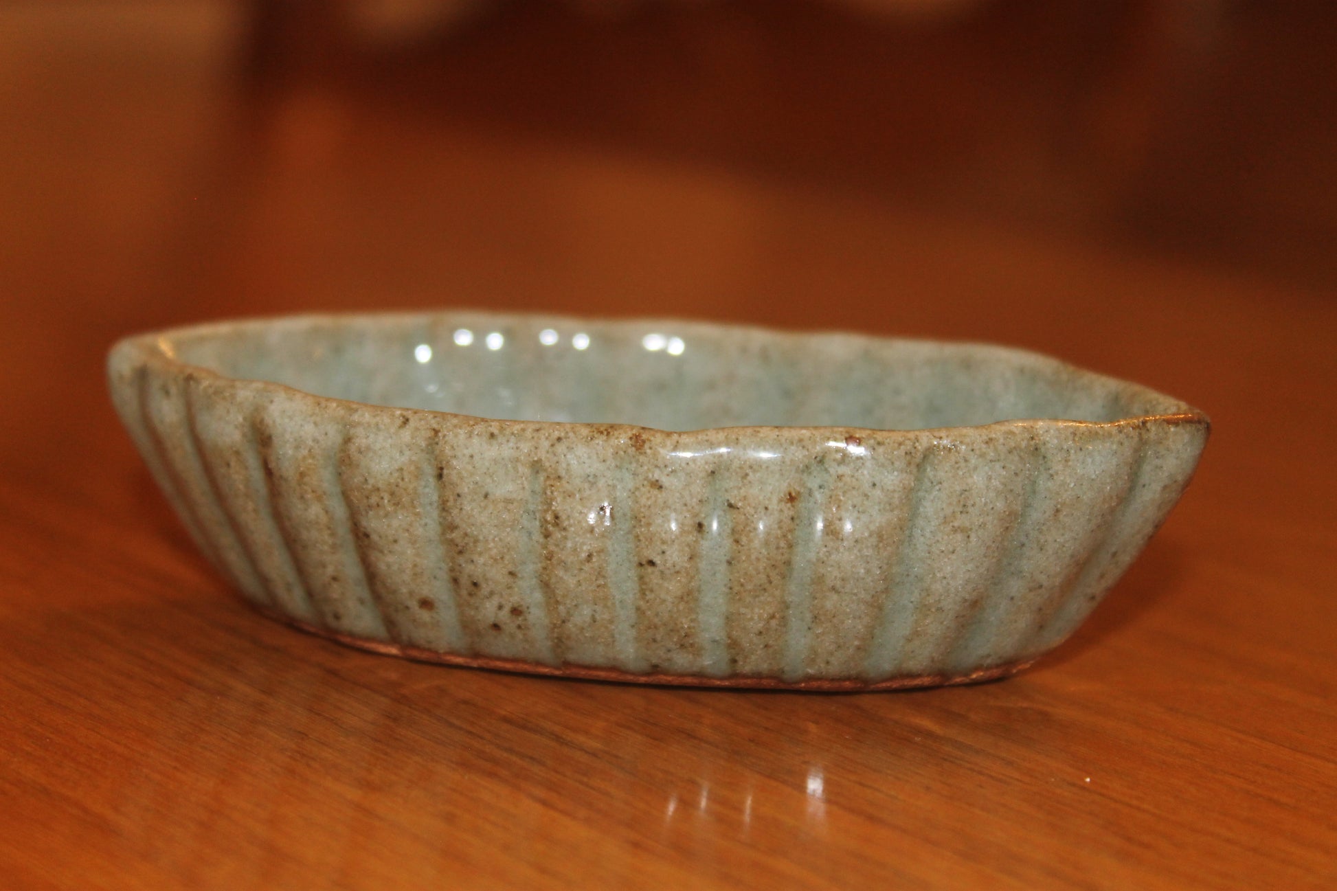 - Elegant Design: Features a blue/green glaze.