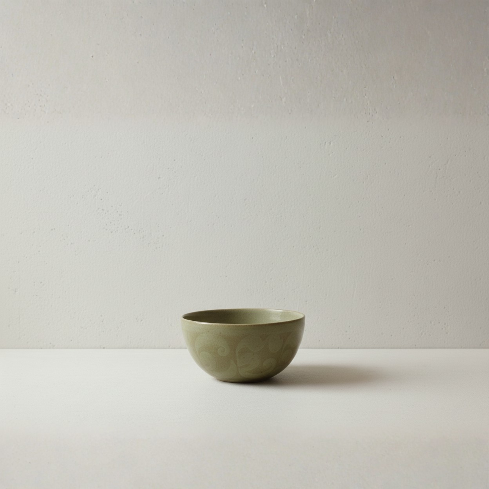 The Moss & Stone Handmade Ceramic Large Print Khmer Bowl showcases the beauty of Khmer script in tones of olive and moss. Food-safe, this bowl can be used for serving, to display fruit, or as a decorative centerpiece.